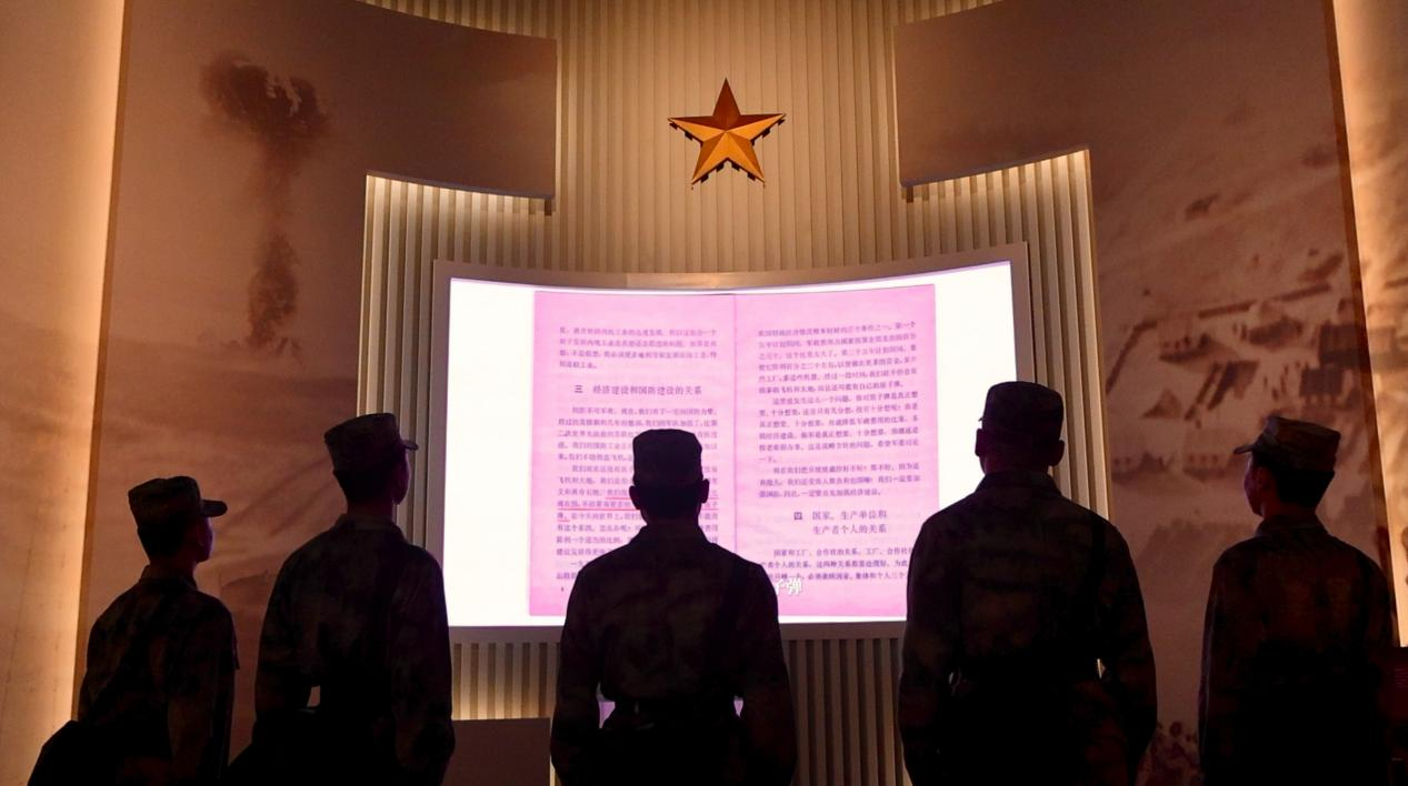 韶峰巍峨,松柏苍翠。来到庄严肃穆的毛主席铜像广场上,全体师生列队肃立,怀着崇敬的心情向毛主席铜像敬献花篮,并依次环绕一周,深切缅怀伟人的崇高风范与历史功勋。“缅怀伟人寄哀思,重温誓词守初心”,2025级全体学生面向毛主席铜像整齐列队,齐声宣读军人誓词,誓言铿锵,在广场上空久久回荡。